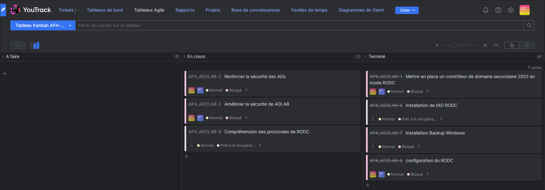 Youtrack est l’outils de gestion de projet utilisé durant ces projets, cet outil m’a à permis moi et mon collègue de nous attribué des taches et de pouvoir suivre notre avancé.